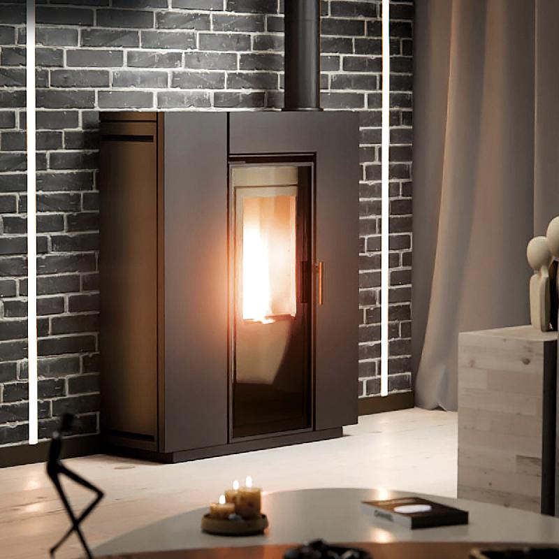Poêle à pellets avec ventilation. De série : Télécommande thermostatique et commande à distance par Wi-Fi.